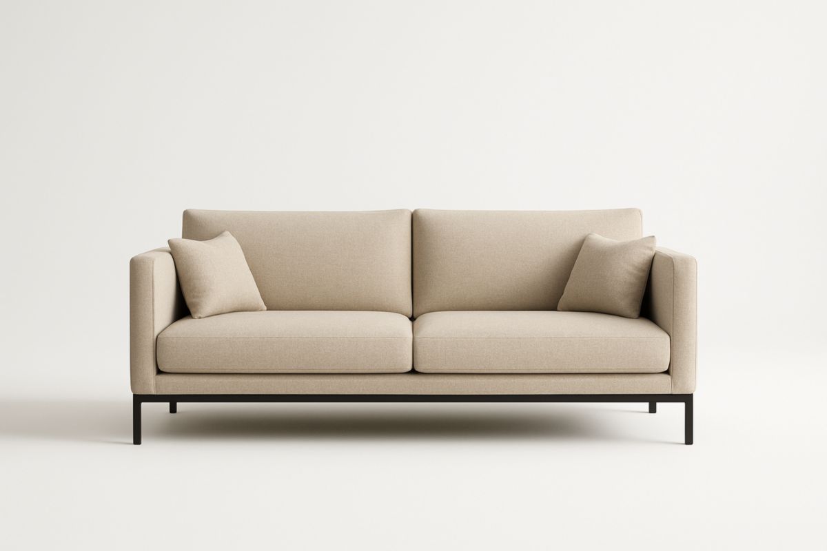 Divano 3 posti beige in tessuto poliestere con struttura in metallo