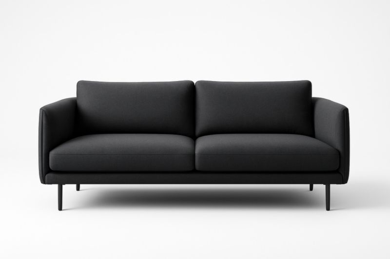 Divano due posti in tessuto poliestere nero, lunghezza 200 cm