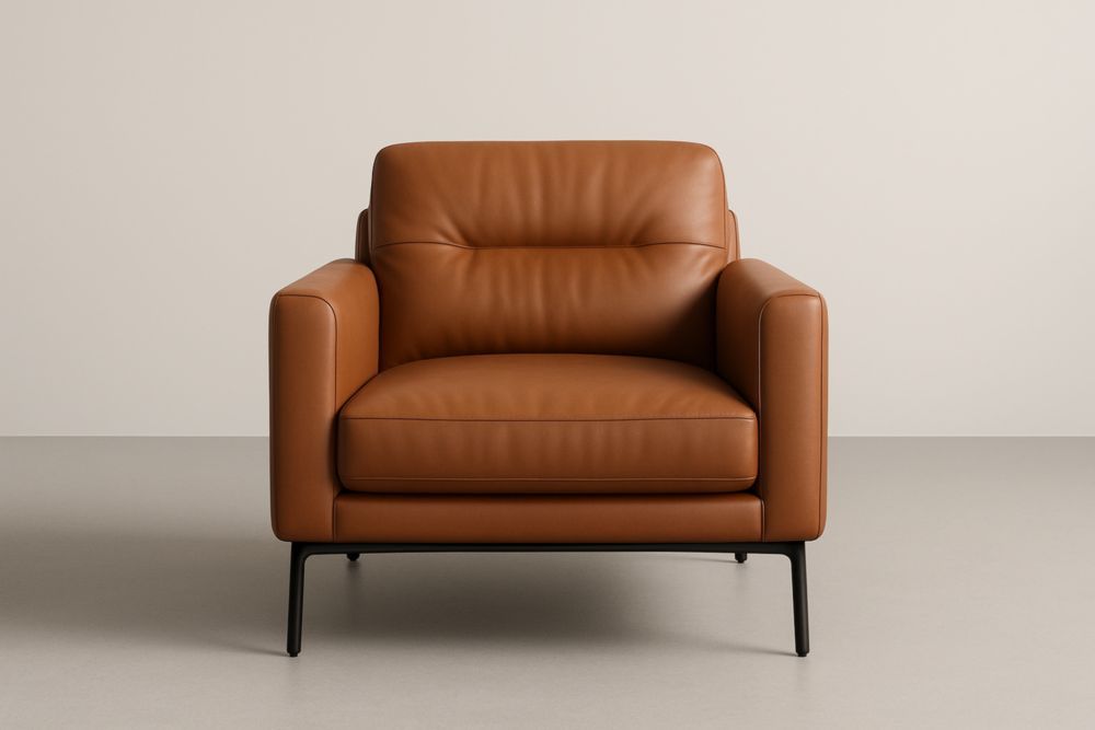 Poltrona da soggiorno in pelle marrone con base in acciaio